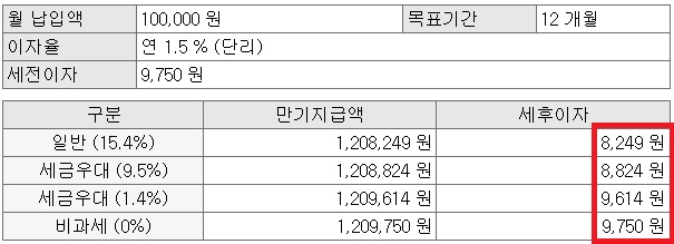 *비과세나 세금우대 상품을 제외한 모든 이자는 15.4%의 세금이 원천징수되는것 참고 부탁드립니다.