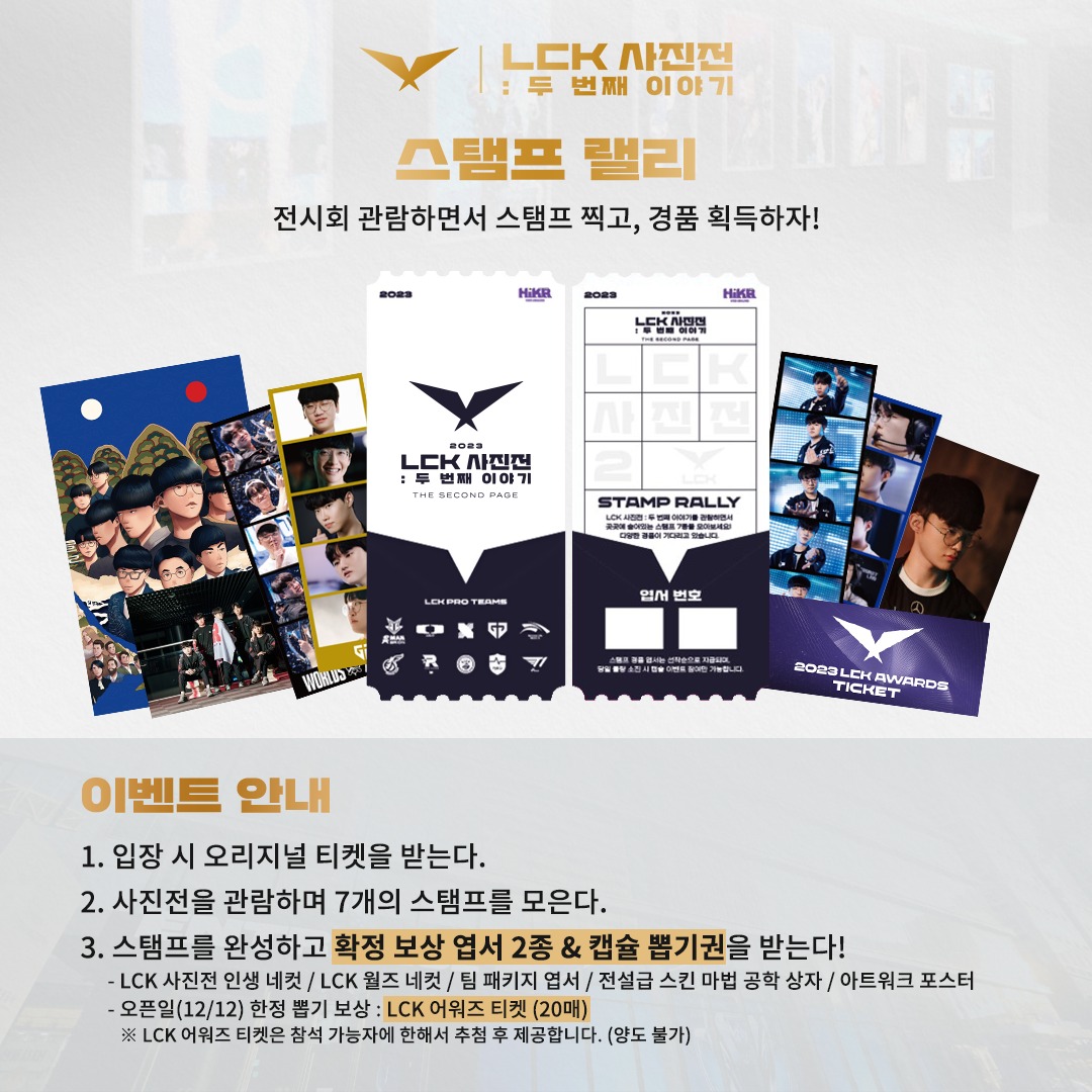 'LCK 사진전 : 두 번째 이야기' 전시회에 대한 내용은 LCK 공식 SNS인 인스타그램이나 페이스북을 참조 부탁드립니다.